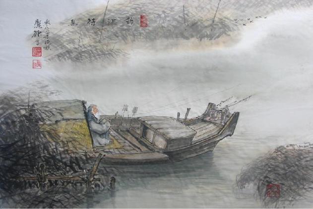 그림 제목은 '낚시를 즐기며 고기를 기다리다(釣湛待魚)'이다. .................(펌)