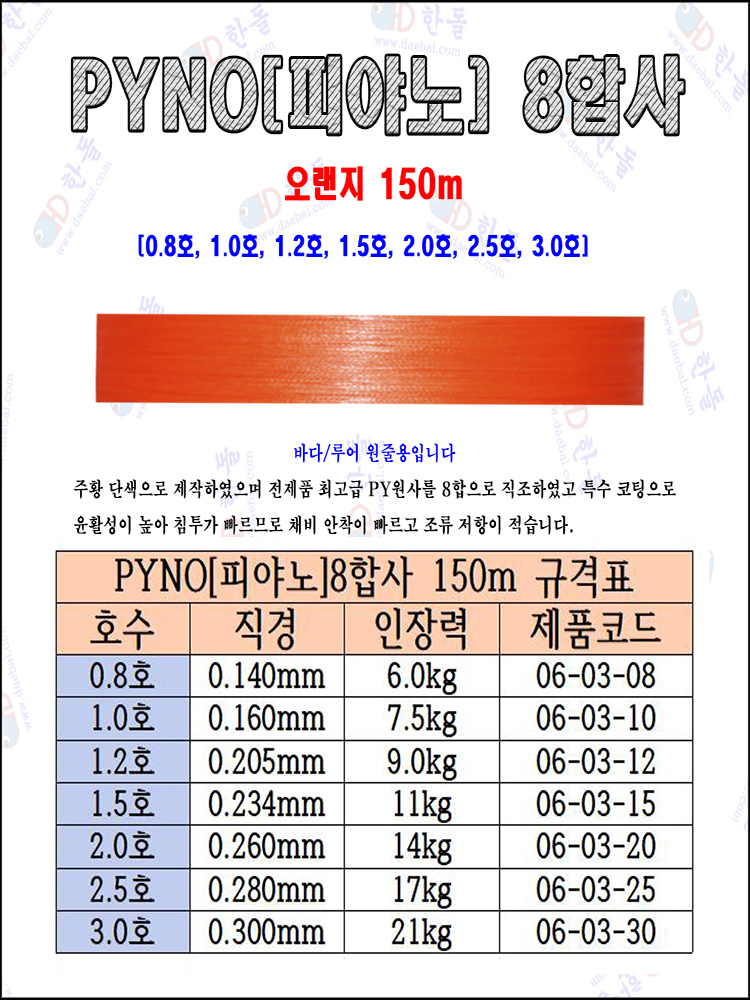 피야노[PYNO] 8합사 원줄용 주황 150m > 06. 라인[낚싯줄, 합사]