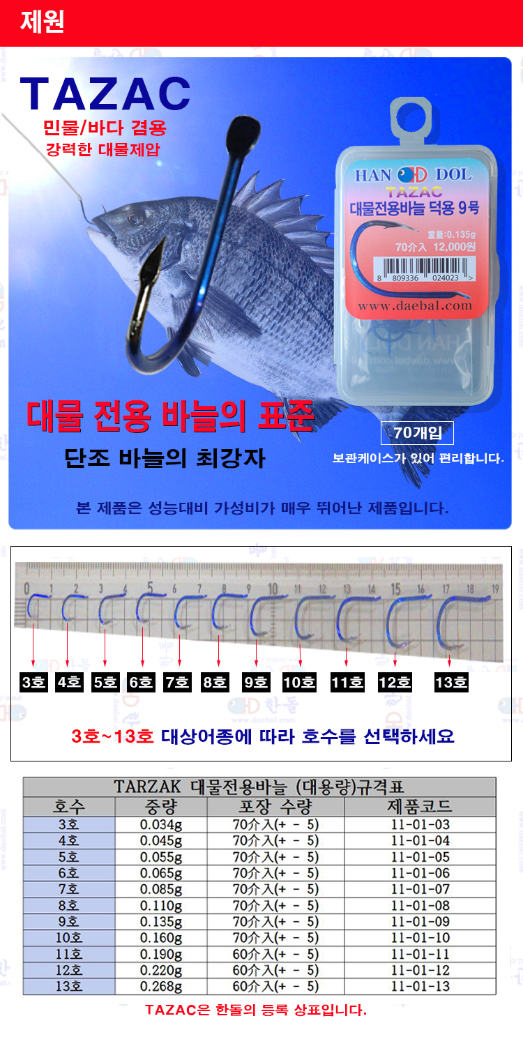 제가 감성돔 바늘의 규격에 대하여 자세히 알아보고